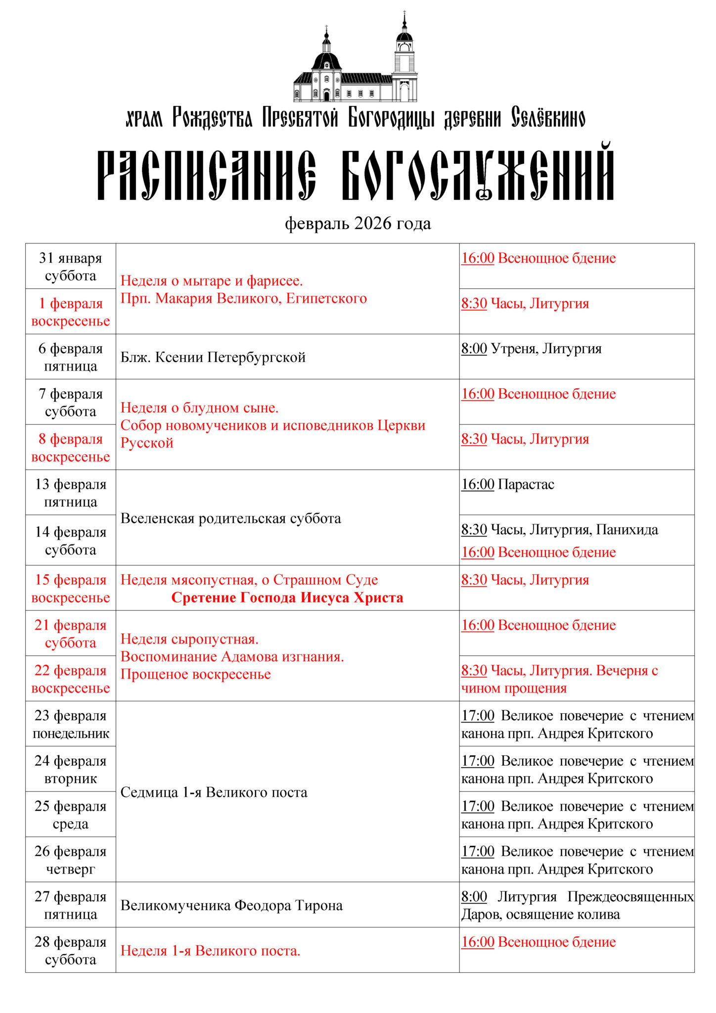 Расписание богослужений Поделиться:Поделитесь в Twitter (Opens in new window)Отправить ссылку в ВКонтакте (Opens in new window)Отправить ссылку в Одноклассники (Opens in new window)Click to share on Google+ (Opens in new window)Отправить ссылку в Мой Мир (Opens in new window)